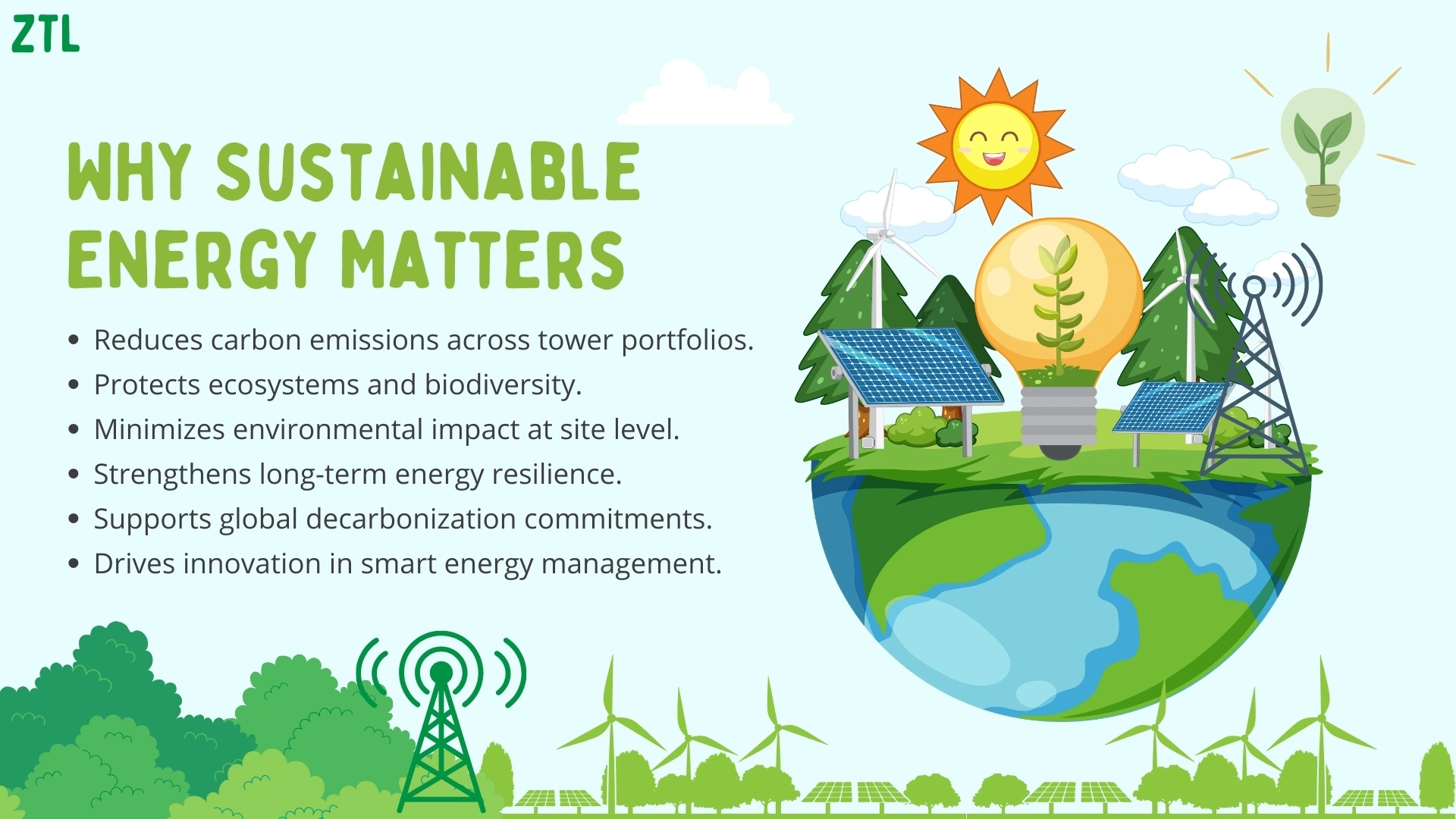 We are committed to reducing our environmental footprint through efficient and innovative infrastructure solutions. This includes optimizing tower design, increasing the adoption of renewable and hybrid energy systems, and improving energy efficiency across our operations.